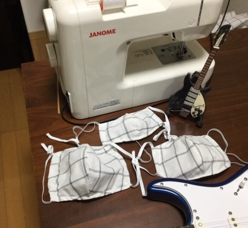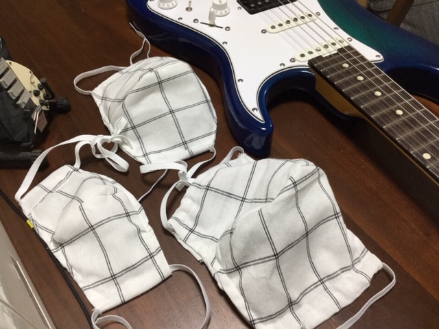 っということで、ミシンでマスク自作しました。ギターで曲を作らず、マスク作る!