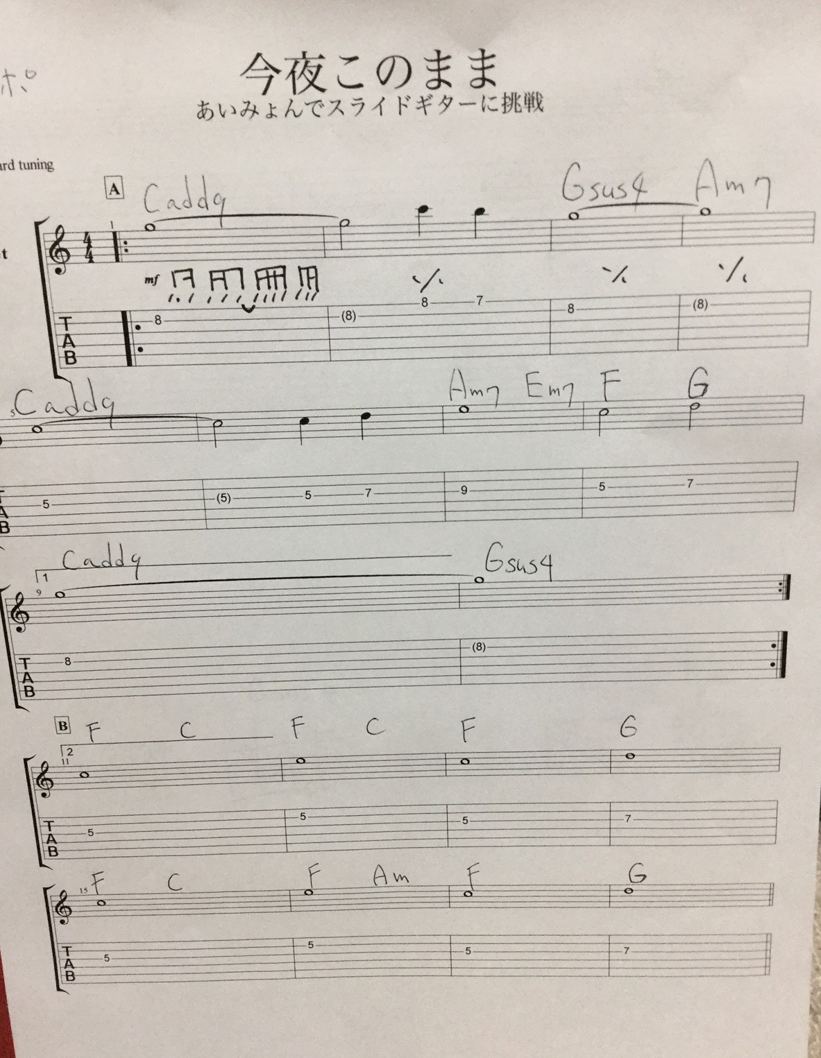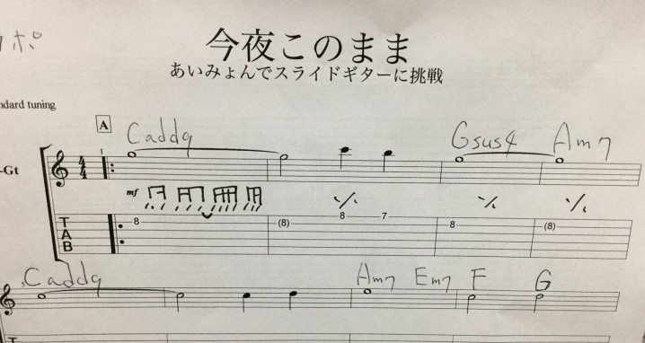 スライドギターパートもオリジナルで加えて譜面を作って見ました。