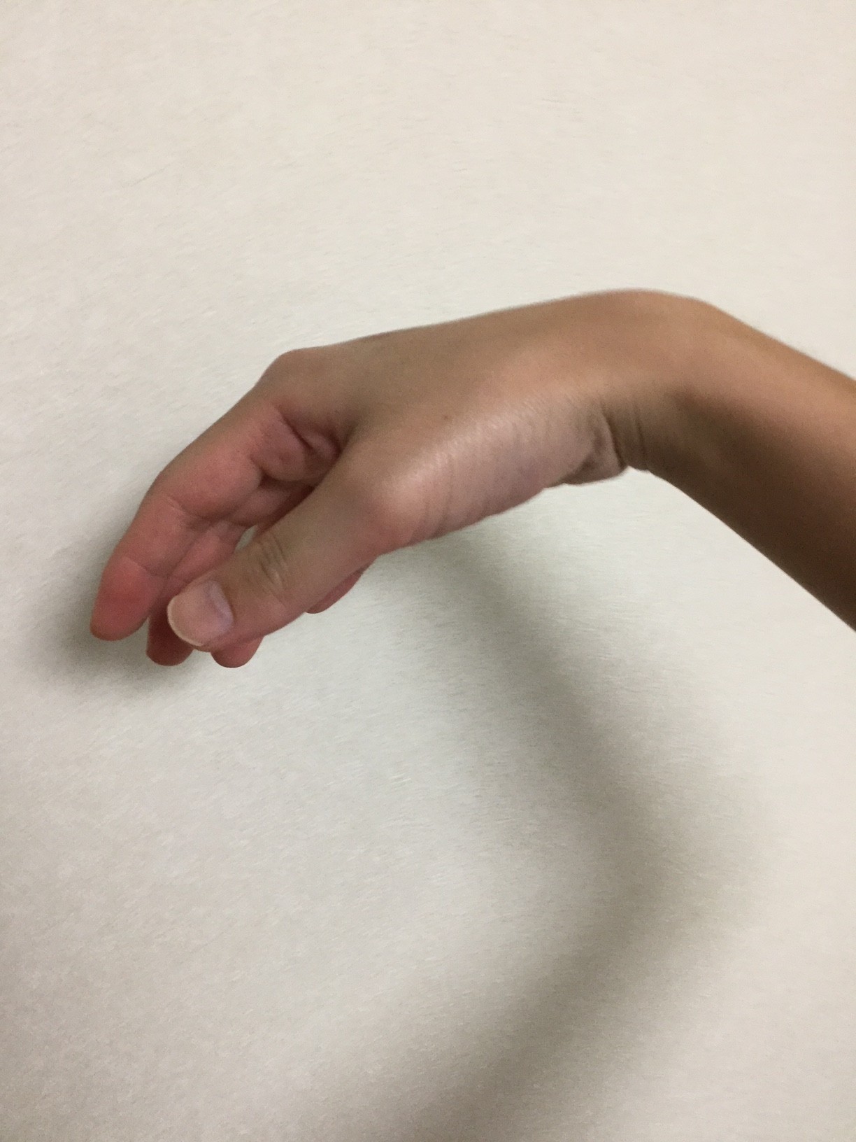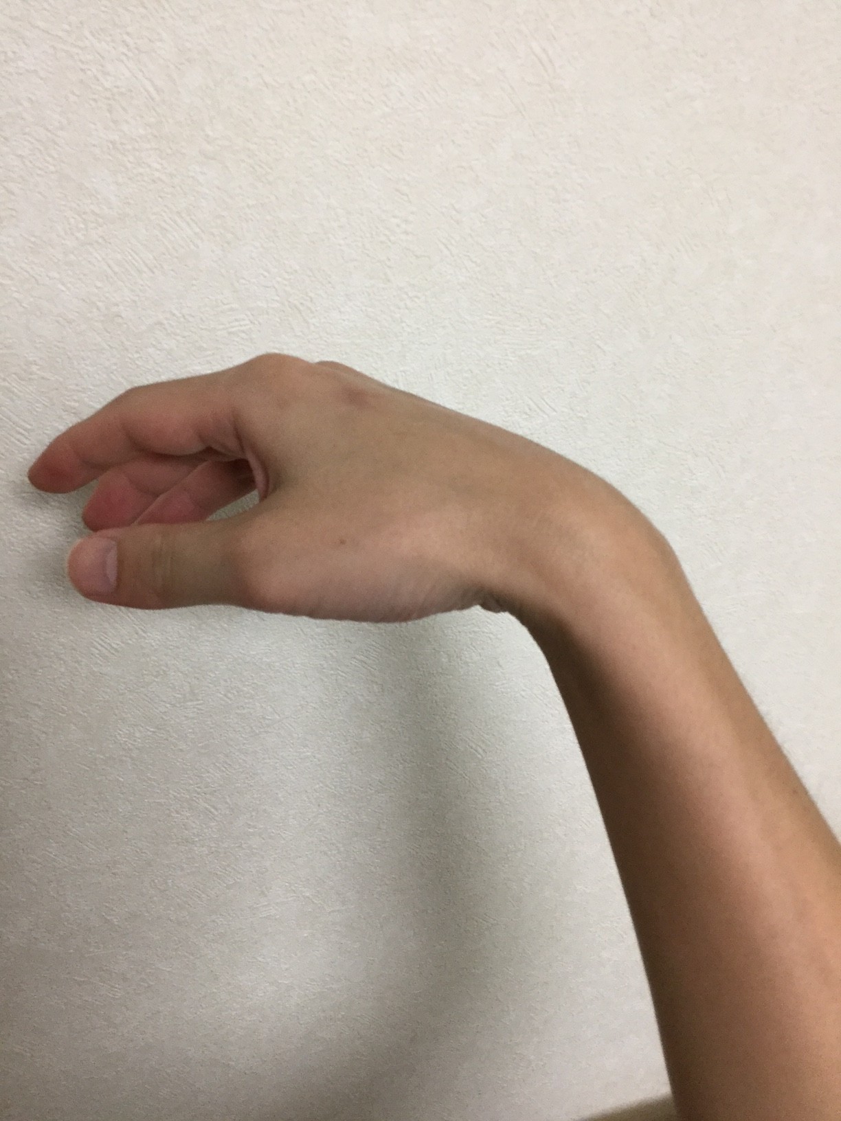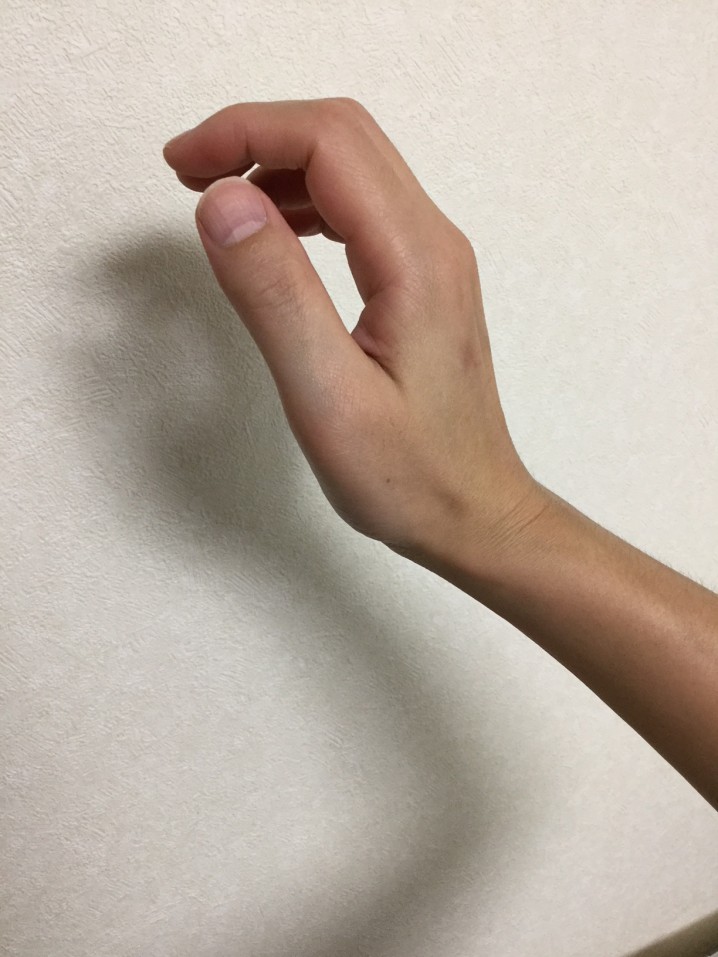 まず前に人がいる気持ちで 肩を叩く感じで 右手を上下します