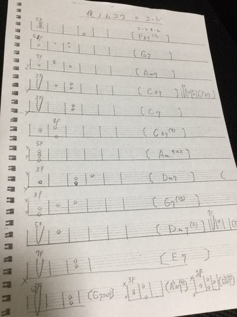 譜面を見てみました。譜面を見ると押さえにくいコードが沢山使われていました。。。