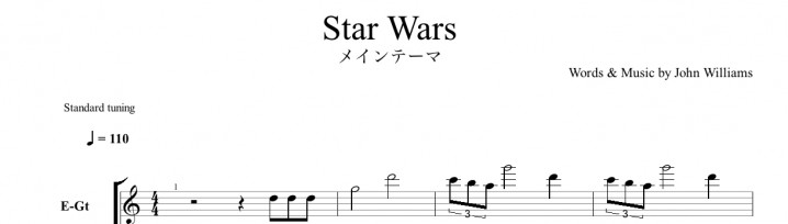 スターウォーズのオープニングで必ず流れる超スーパー有名曲のギタータブ譜を