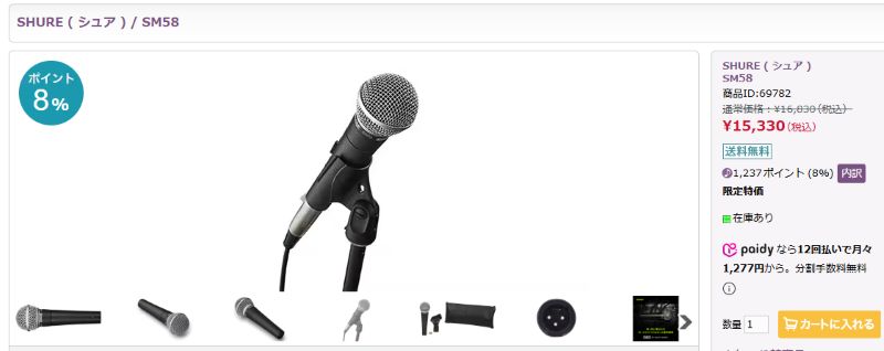 SHUREのSM58は、ダイナミックマイクのスタンダードとされているので