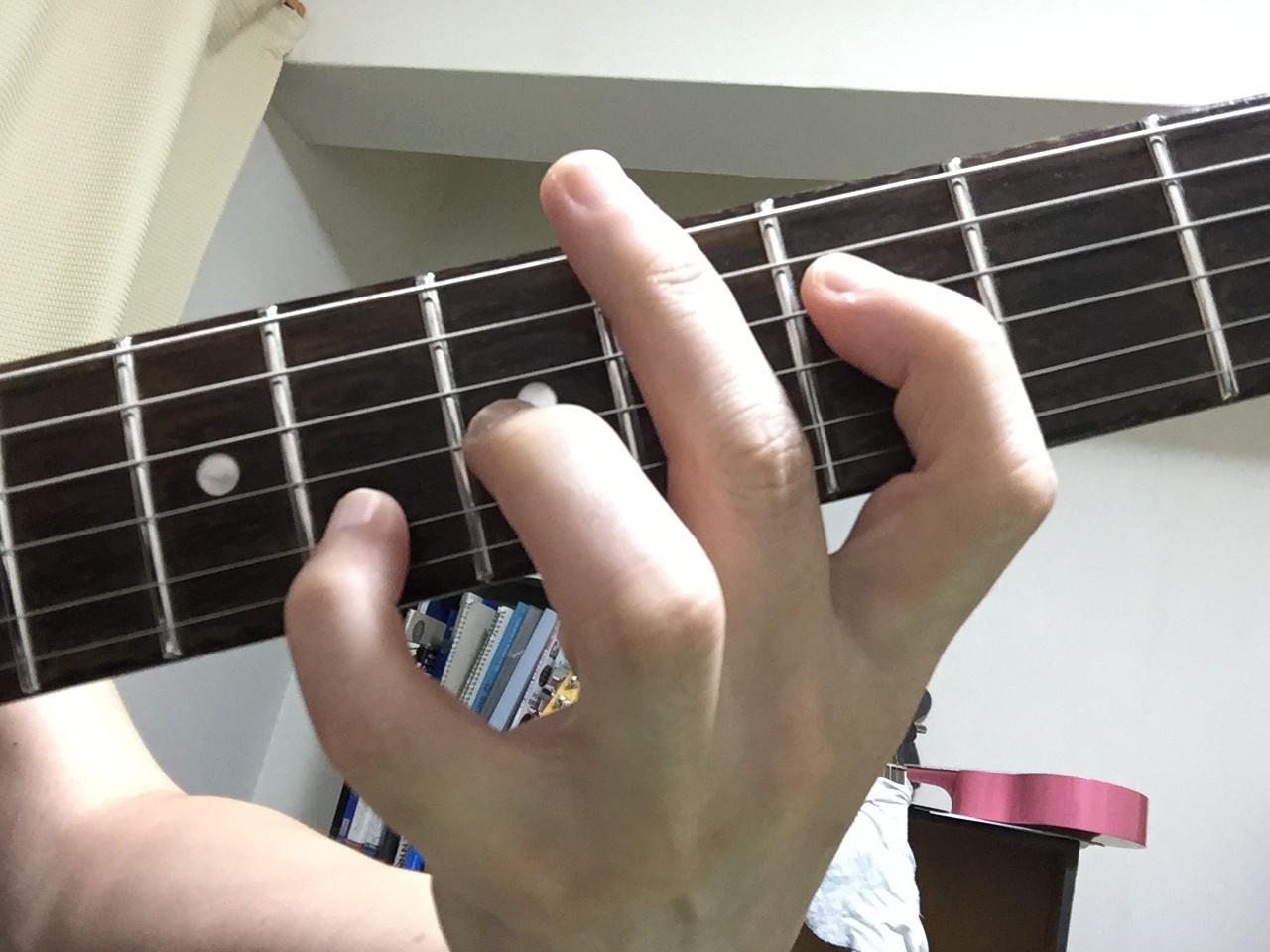 ギターの場合、中指を立てるといい感じにミュートできる時が多くあるので