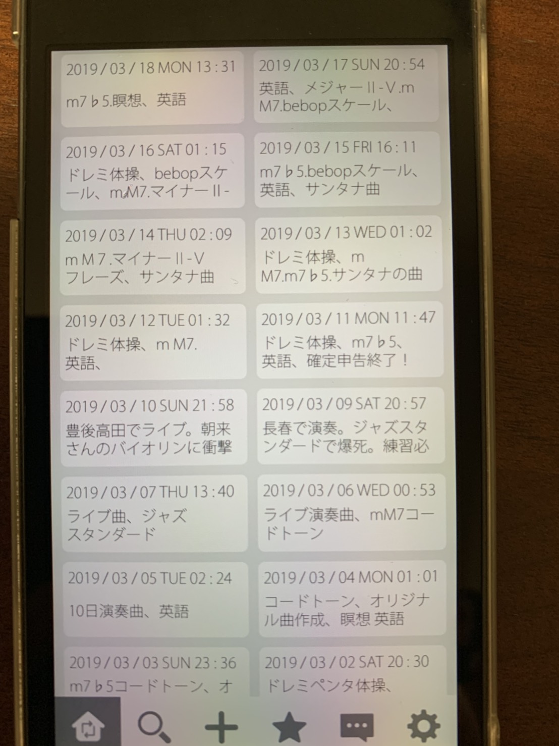 僕も練習日記をつけ始めています。[nikki」という無料アプリを使って