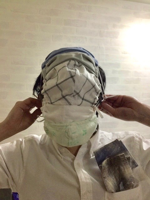胸ポケットに頂いた布マスクを入れて自分の所有する6枚の布マスクを全て装着して!