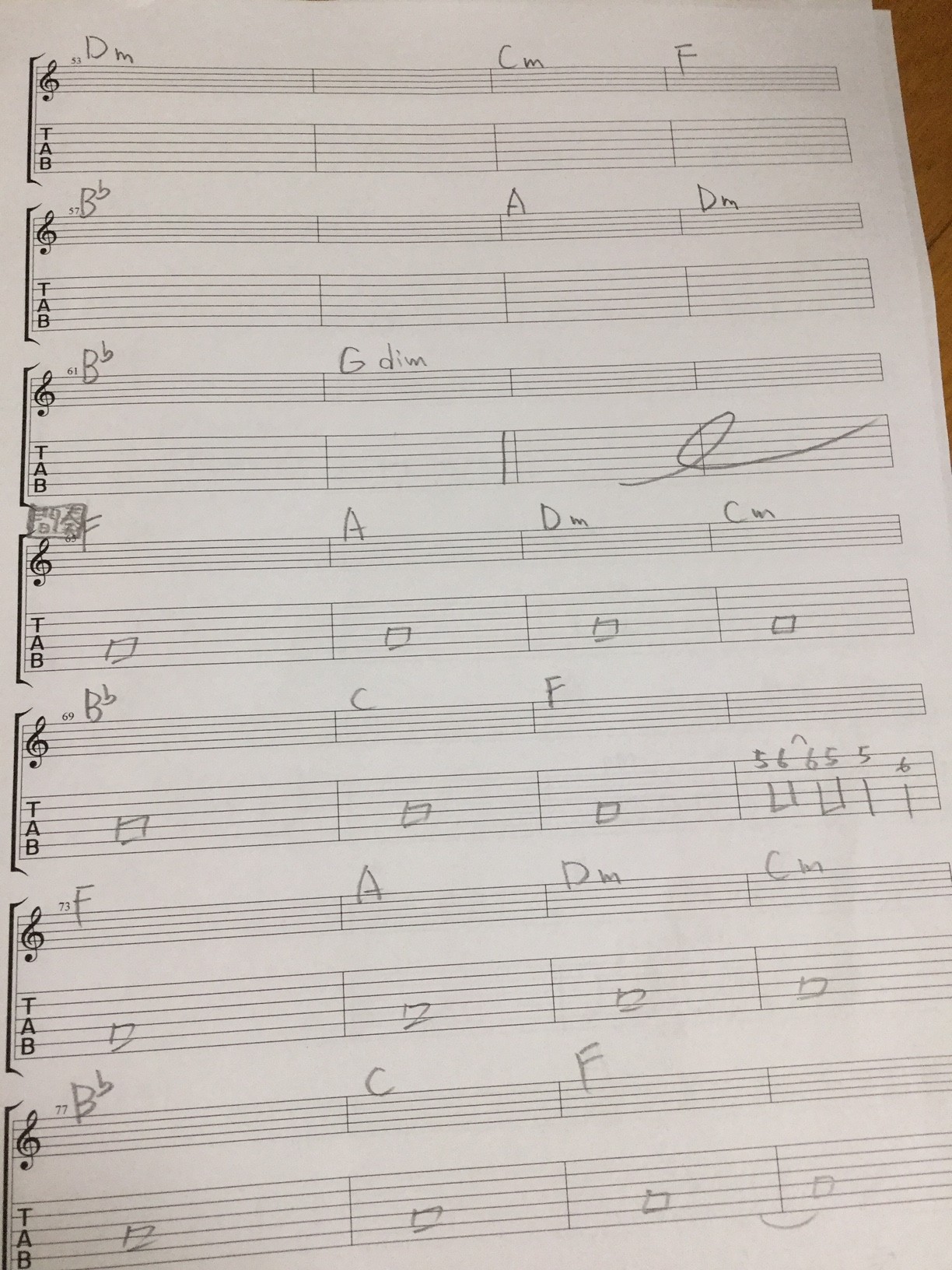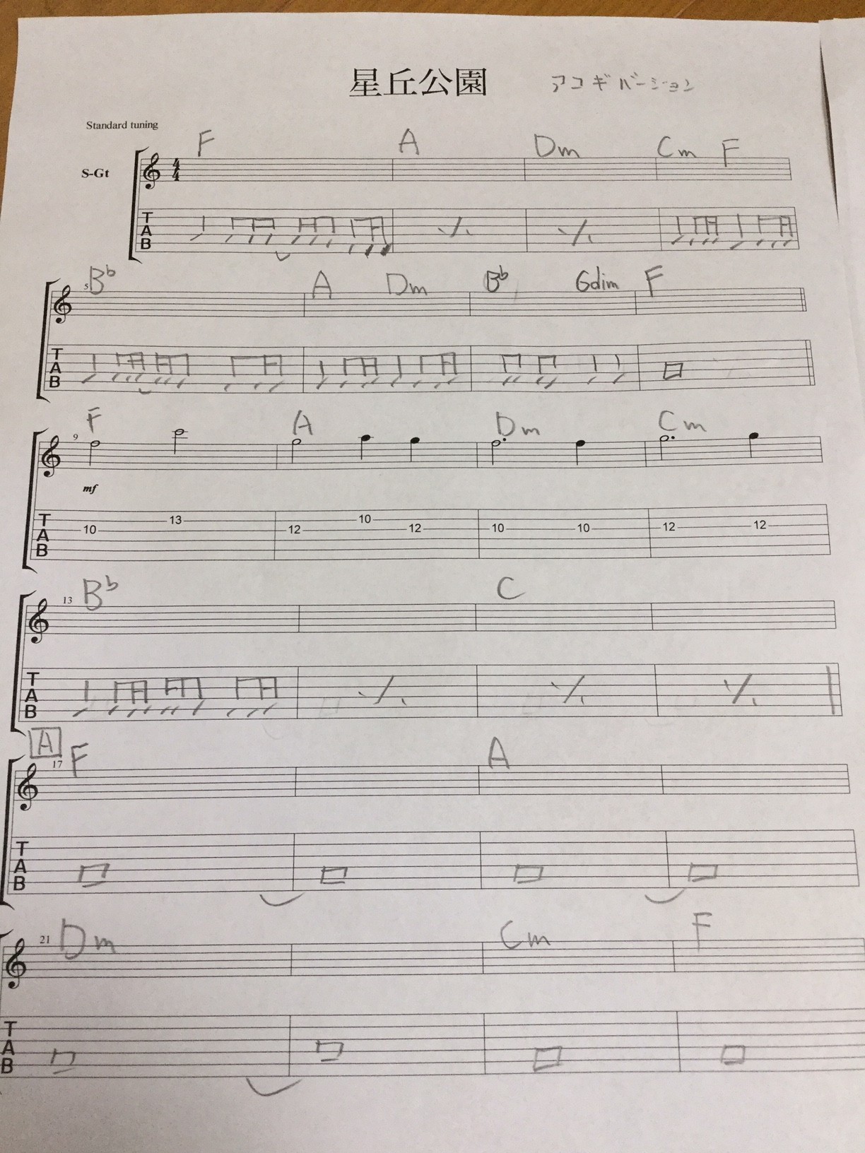 アコギで弾けそうな譜面も動画を聞きながら作って見ました♪