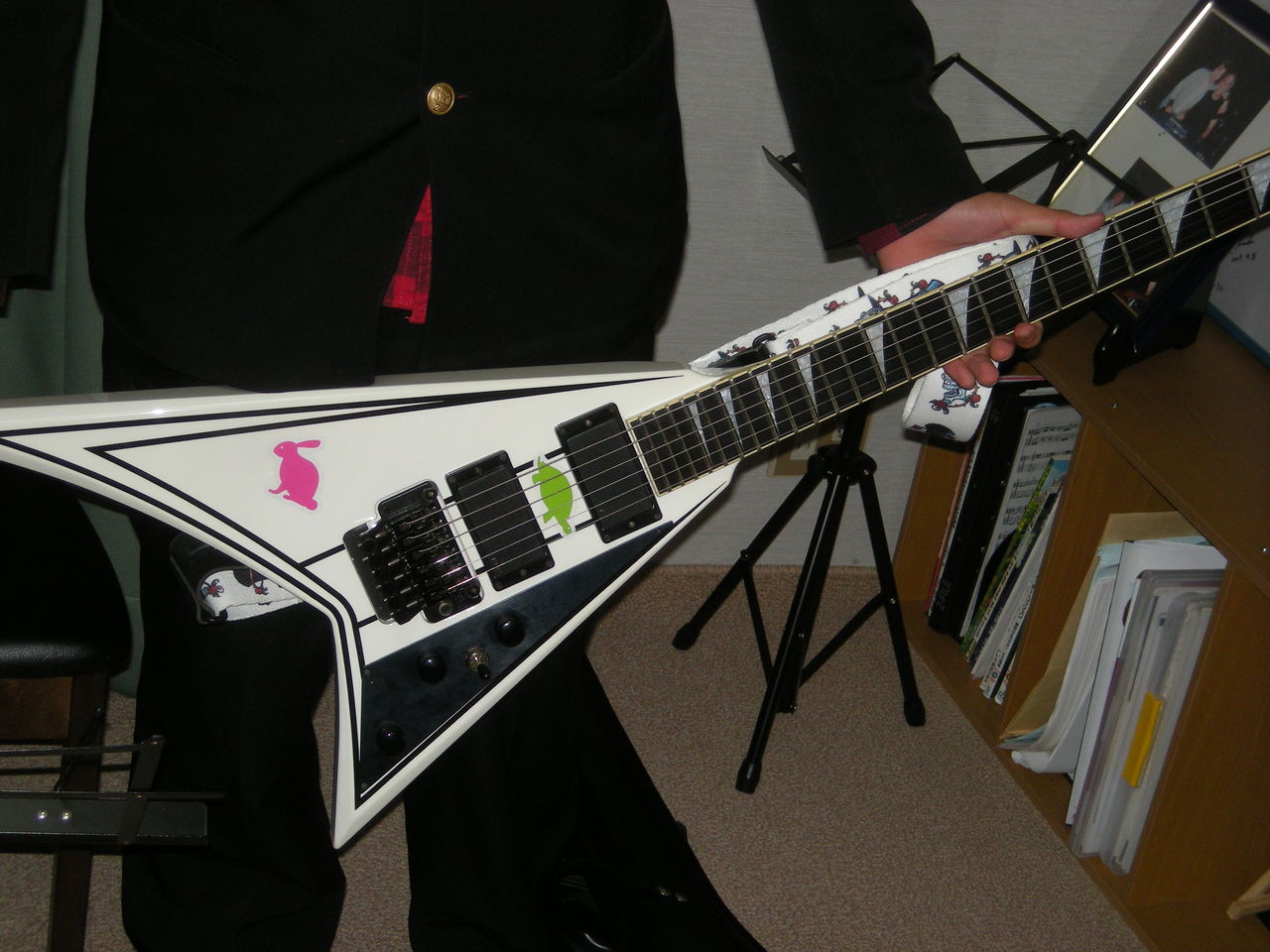 2011.03.08 ブログ 中村太一 取り扱い注意! Twitter Facebook Google+ はてブ Pocket 生徒さんコレクション!!フライングV!!! 座りながら弾けないギター編♪ いや。。。弾けるんですけど。。。なんだか面白い座り方になるっていう『笑』 僕も昔は、こういうギター1本欲しいなっと思っていますしたが♪社会人になると 駄目ですね。。攻めの気持ちを忘れます。。。 さて!このギターは、非常に戦闘能力が上がるというオプションも! カクカクしてるので、非常に危険です!刺さります。。。 おぁら~~~~!!!!かかってこい!!おめぇら~~~!!!! この記事をシェアする Twitter Facebook Google+ はてブ LINE Pocket RSS feedly コメントを残す コメントをキャンセルメールアドレスが公開されることはありません。 ※ が付いている欄は必須項目ですコメント ※ 名前 ※ メール ※ サイト 次回のコメントで使用するためブラウザーに自分の名前、メールアドレス、サイトを保存する。