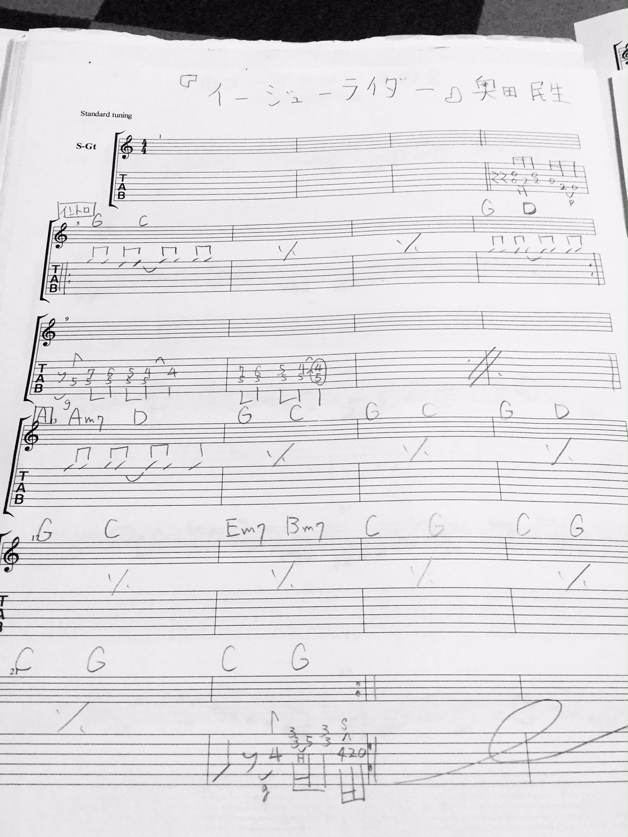名曲だけど脱力ソング!【イージューライダーを弾き語り用に】譜面にしてみました!でした。