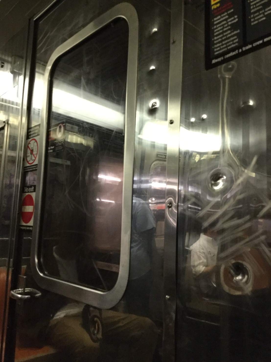 帰りの電車でびっくりなことがなんと 車内で弾痕を発見。