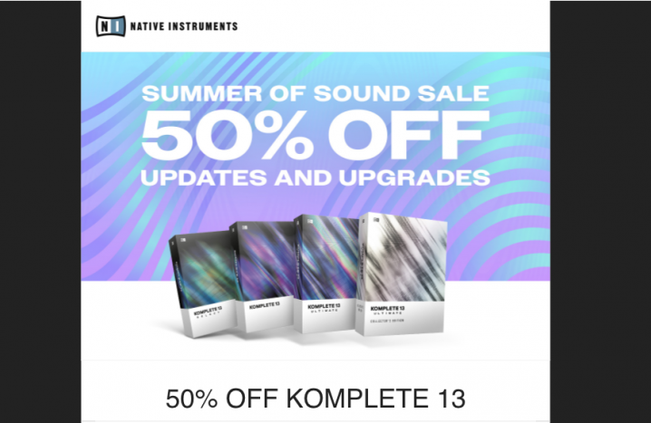 Native Instrumentsのホームぺージにアクセスするとこのようなサマーセール画面が出てきます。