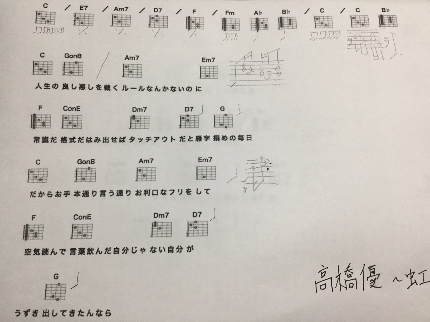 曇り空の中、明るい曲をアコースティックギターで弾こう【虹/高橋優】オブリ付きコード進行!のご紹介でした♪