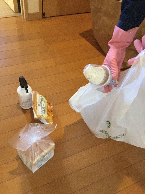 ビニール袋にウィルスが付着している可能性もあるので袋は、捨てます。
