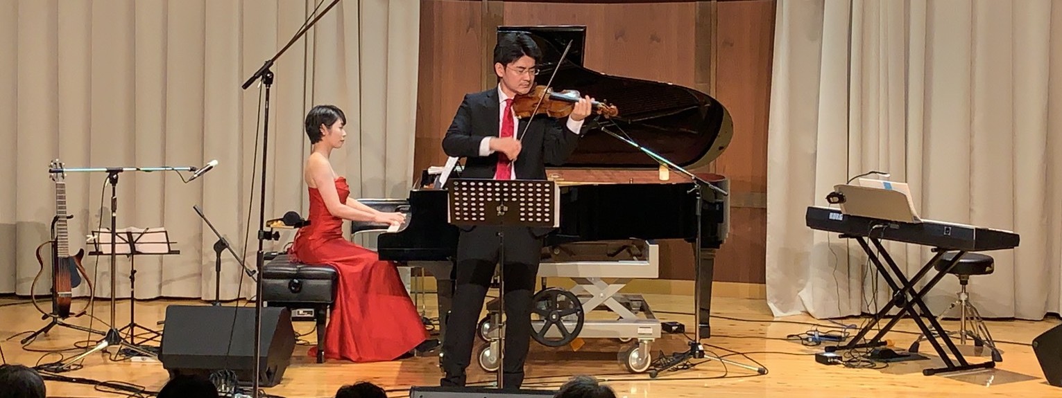 朝来さん(ヴァイオリン)と小町美佳さん(ピアノ)の演奏。