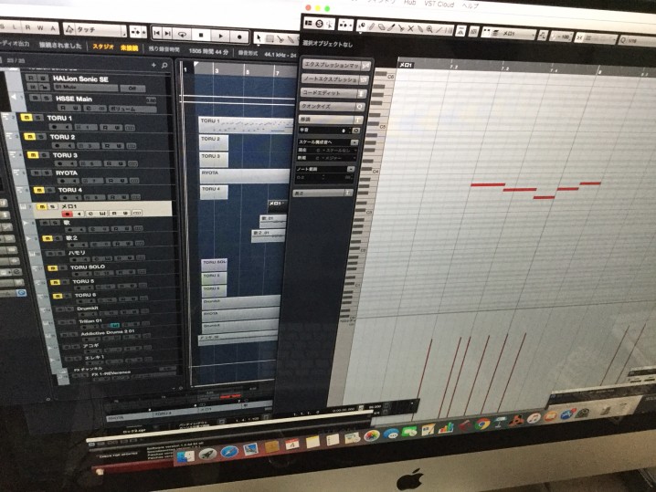 こんな感じで、教室でピアノでメロディーを打ち込んだ後のカラオケに合わせて