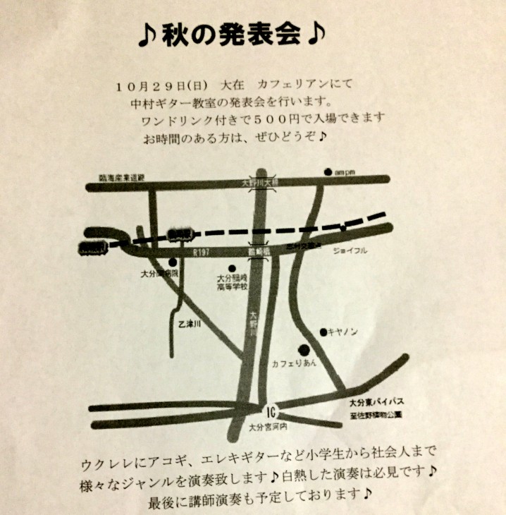 秋の発表会を中村ギター&ウクレレ&作曲教室では行います♪