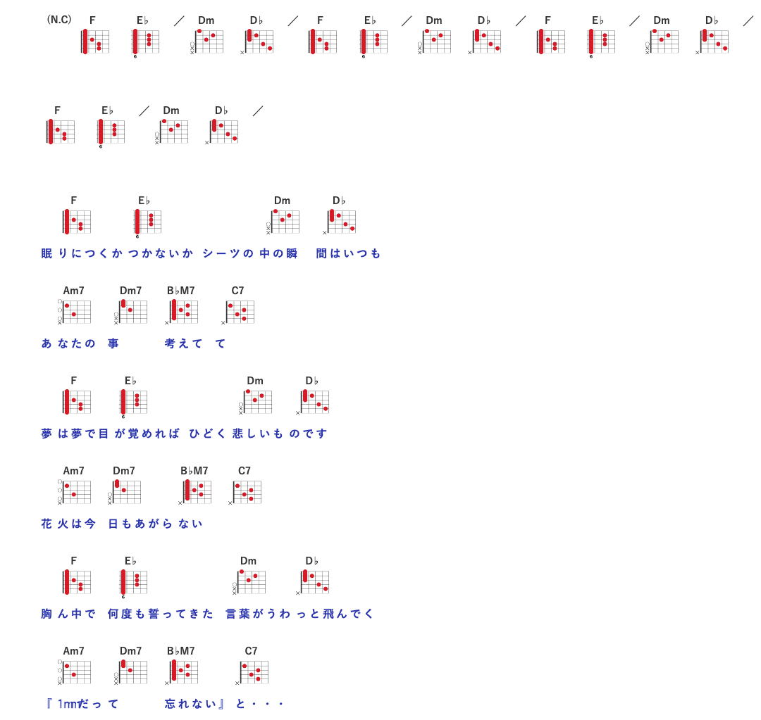 またオンコードは無視をして左のアルファベットのコードを弾くと楽に弾けます。