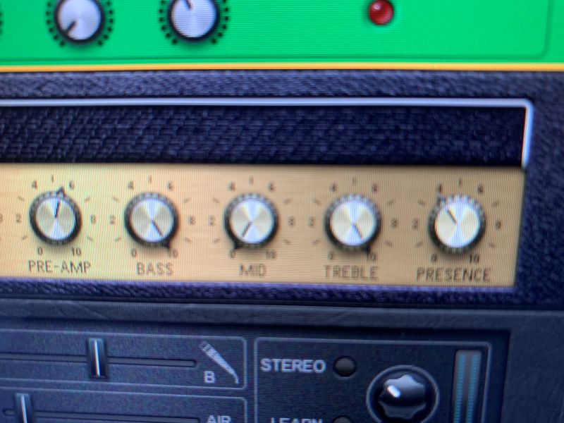 このようにマーシャルらしい一般的な音です。ゲインも5ぐらいになっていますので