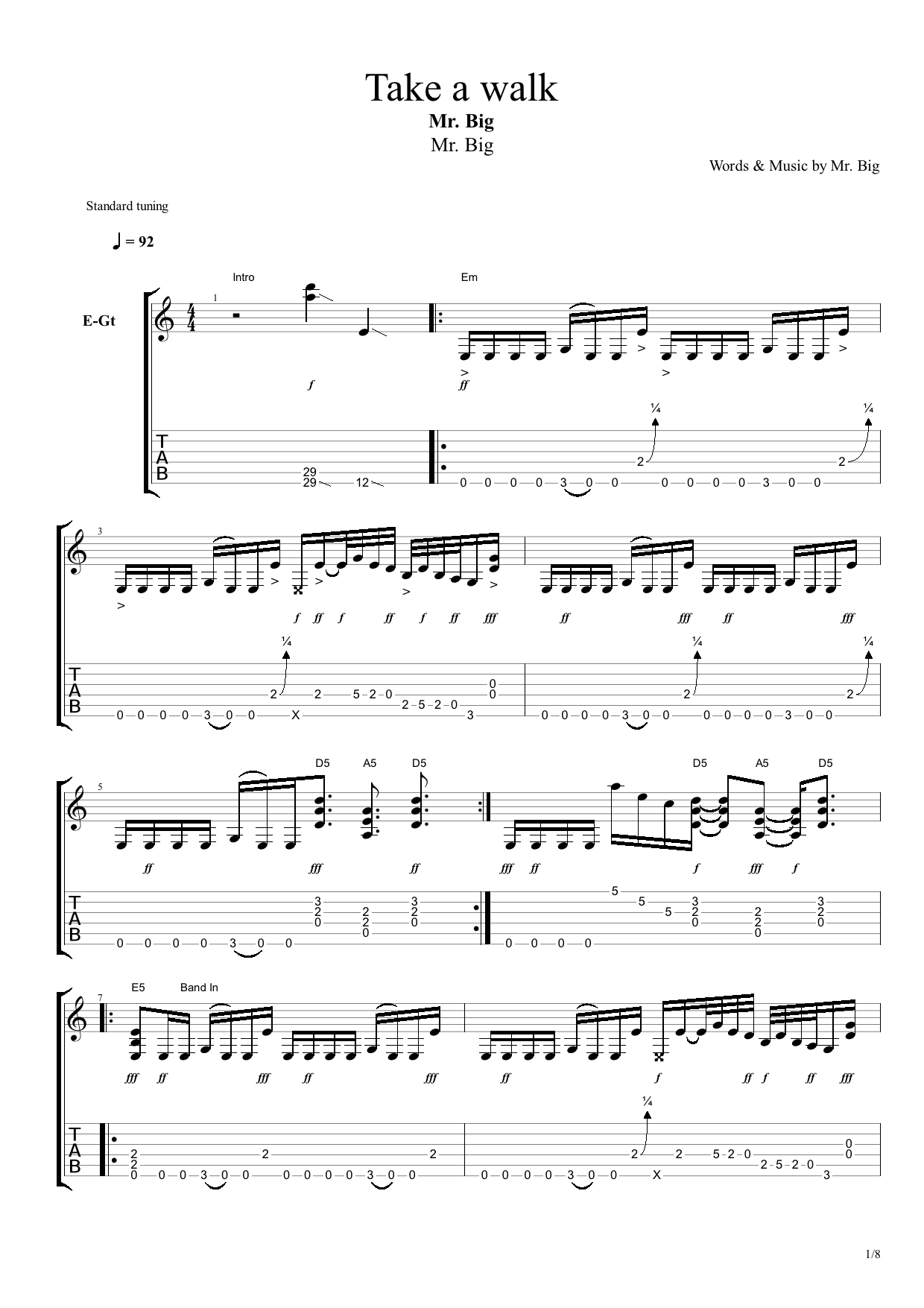 まさしくリフ音楽!カッコいいロックナンバーです!メトロノームに合わせて弾くのに丁度いいです。