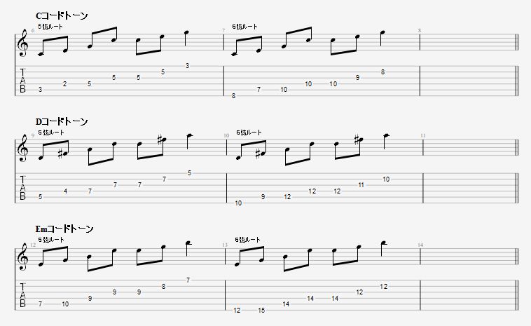 ギターソロや伴奏でも理論的に弾く場合 以下のような