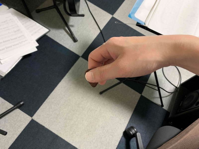 ピックを持つときは人差し指と親指の2本で持ちます。