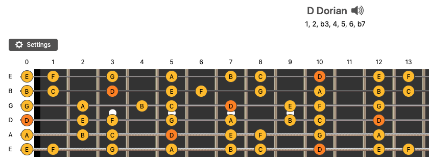 ギターで弾くDドリアンスケールの全ポジションになります。
