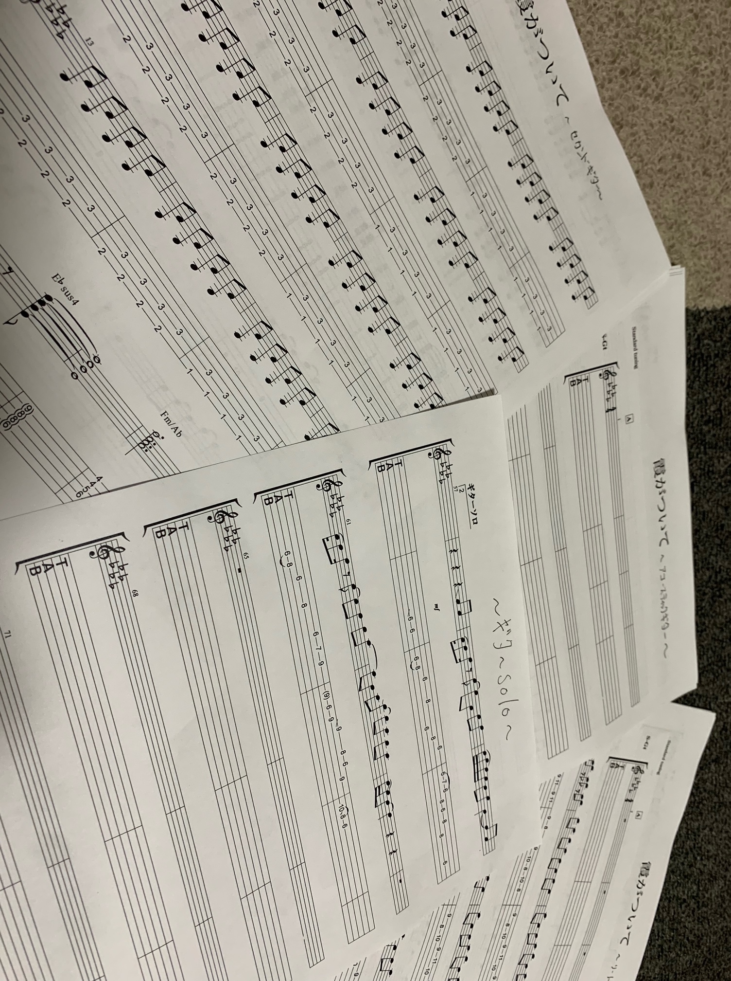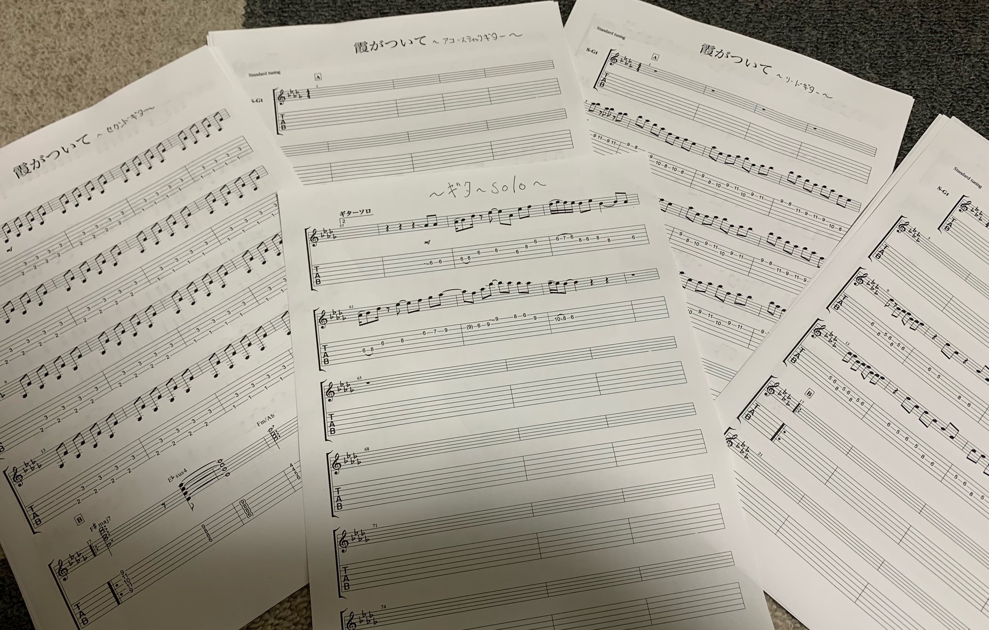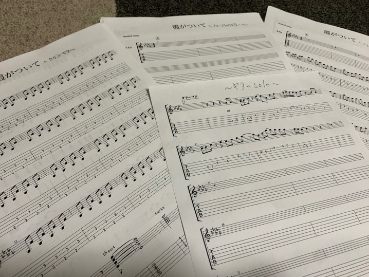 完全コピーのギターパート5つの譜面が完成しました。
