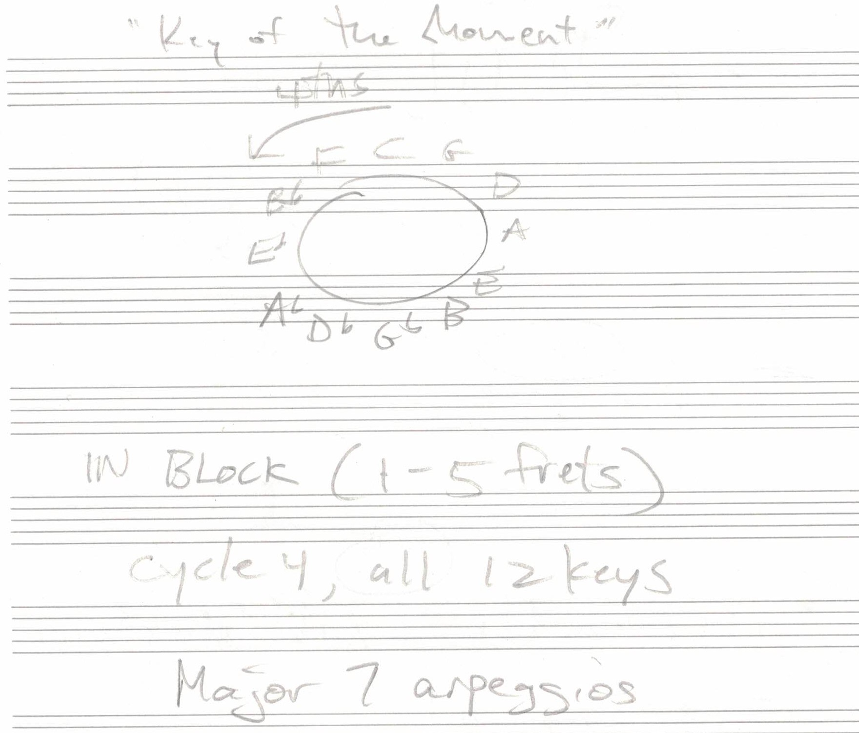 でなるべく5フレットから10フレットしか使わないとか、ポジションを限定して12キー弾いていきます。