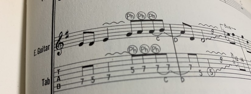 このようにバンドスコアを見るとPhだらけのギターソロになっていることが沢山あります。
