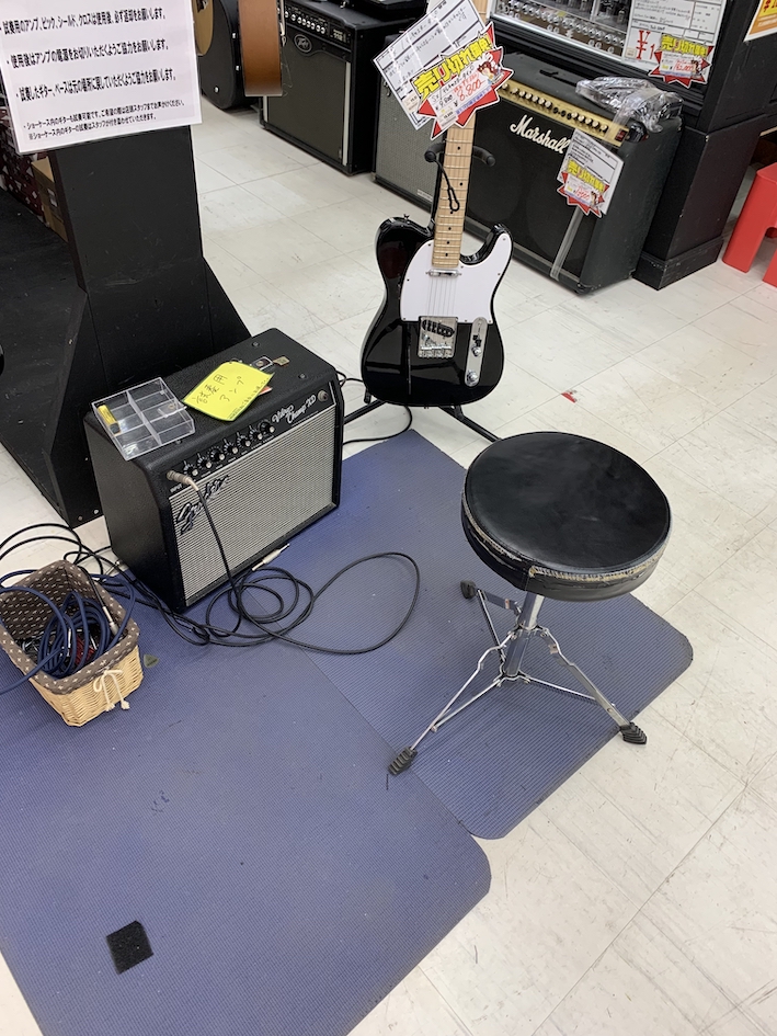 ギターアンプと椅子、ピックなどがセッティングしてありました。