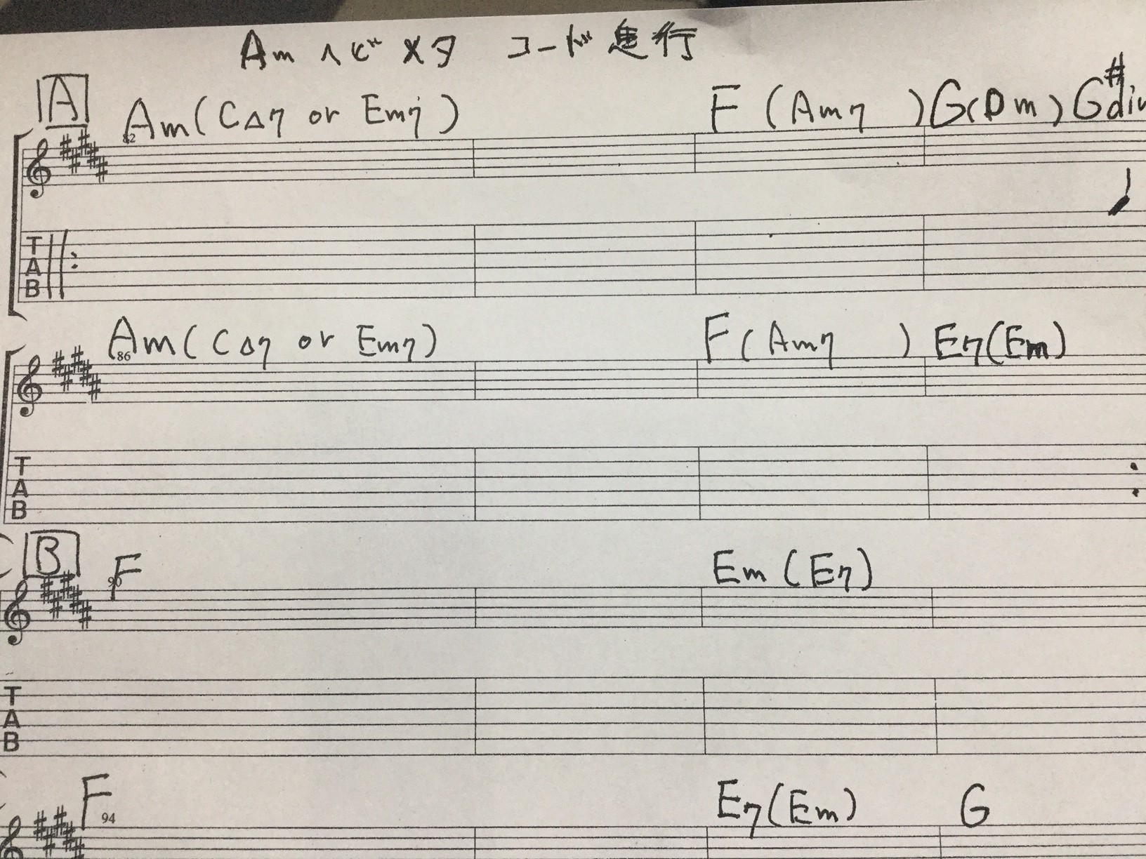 で上の代理コードや代理の代理で弾いたソロがこちらです
