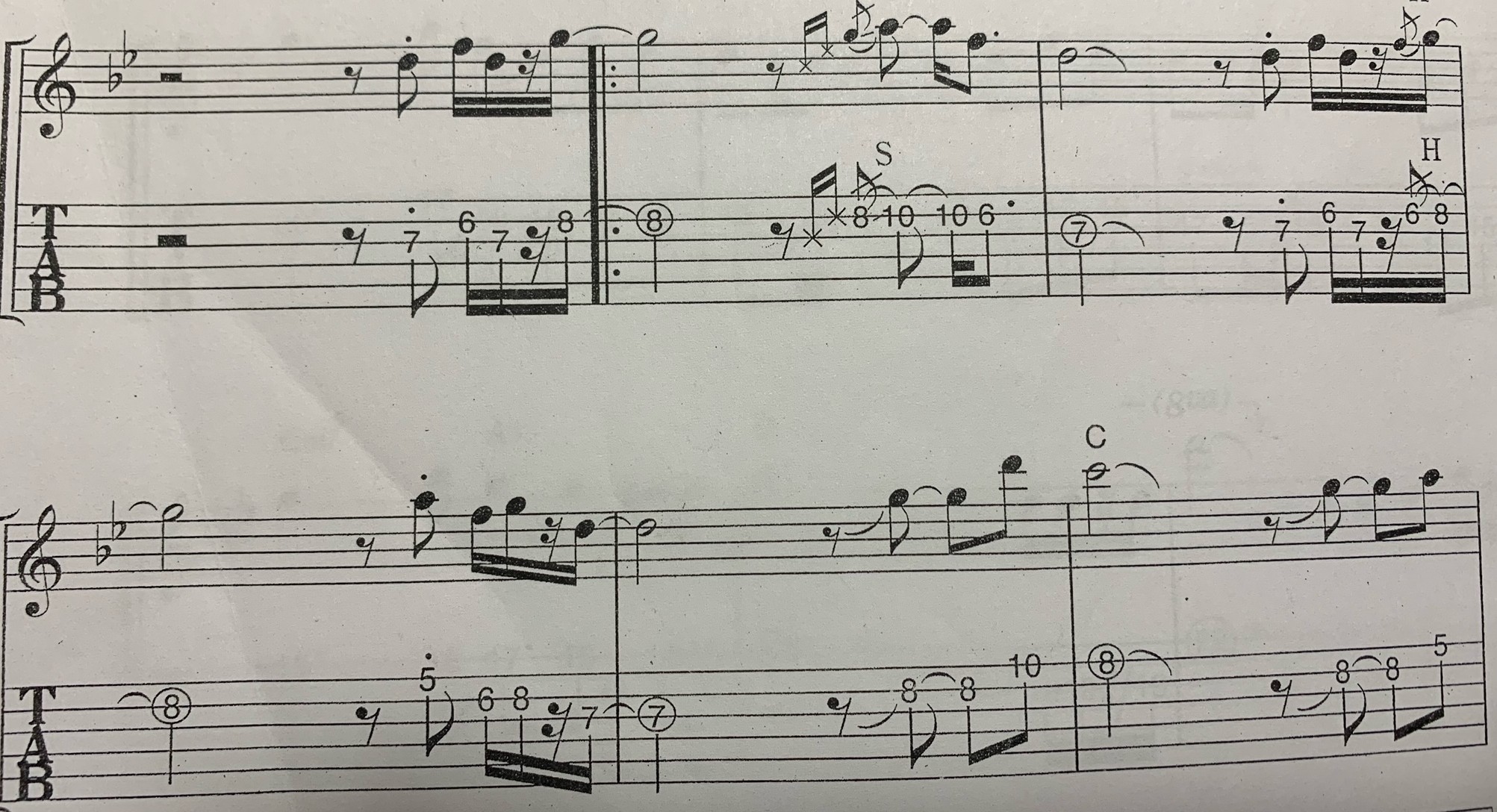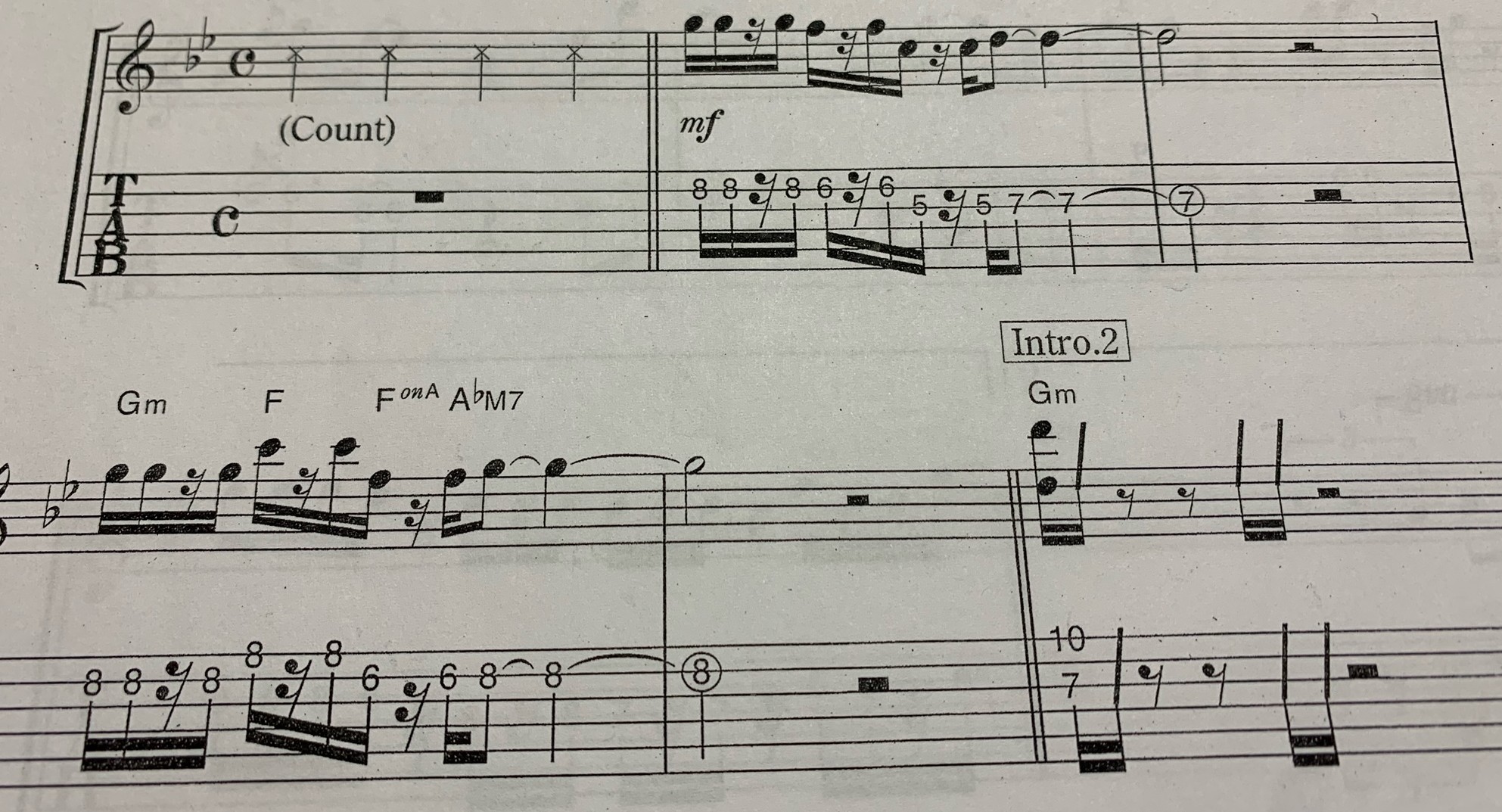 試しに上の動画に合わせて譜面通りにエレキギターで弾いてみました♪