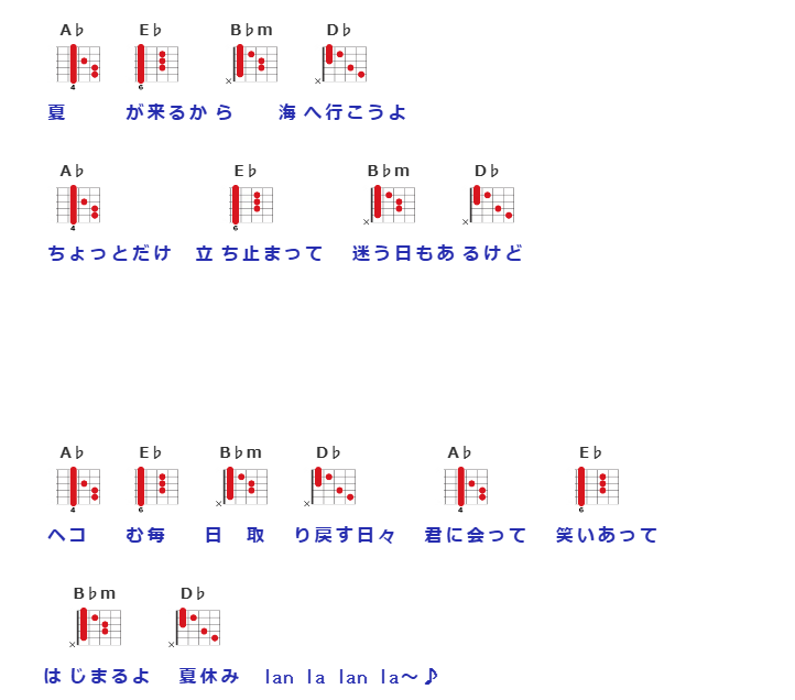 A♭キーになるので♭が付くコードが沢山出てきます。