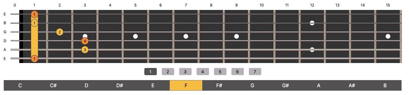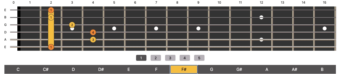 セーハするコードを⒈弦の音階に沿って右にずらしていけば12個のコードが弾けてしまうからです♪