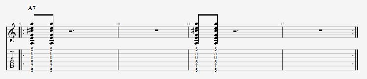 2小節毎にA7のコードを弾き 休符の部分でギターソロを弾きます。