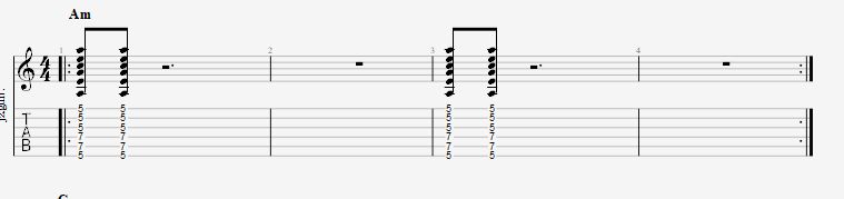 2小節毎にAmのコードを8分音符で弾いていきます。
