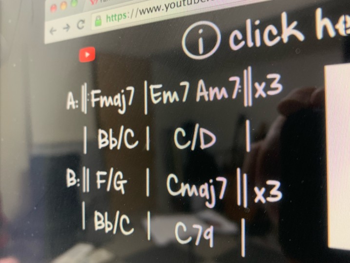 YouTubeにあるカラオケ音源を使いながら、アコギで練習すると