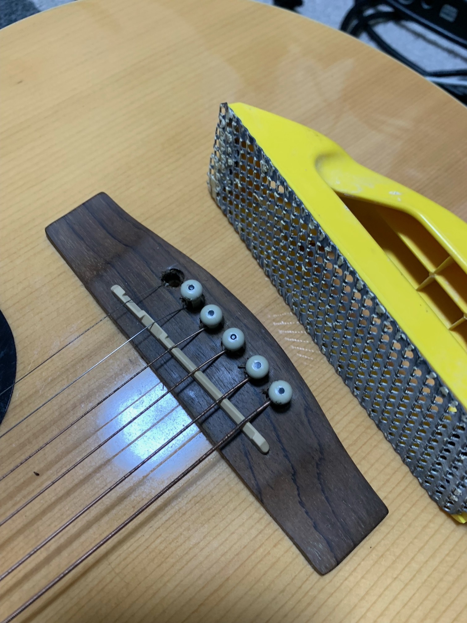 弦を緩めてブリッジにあるサドルという部分がありますのでそこを削ります。