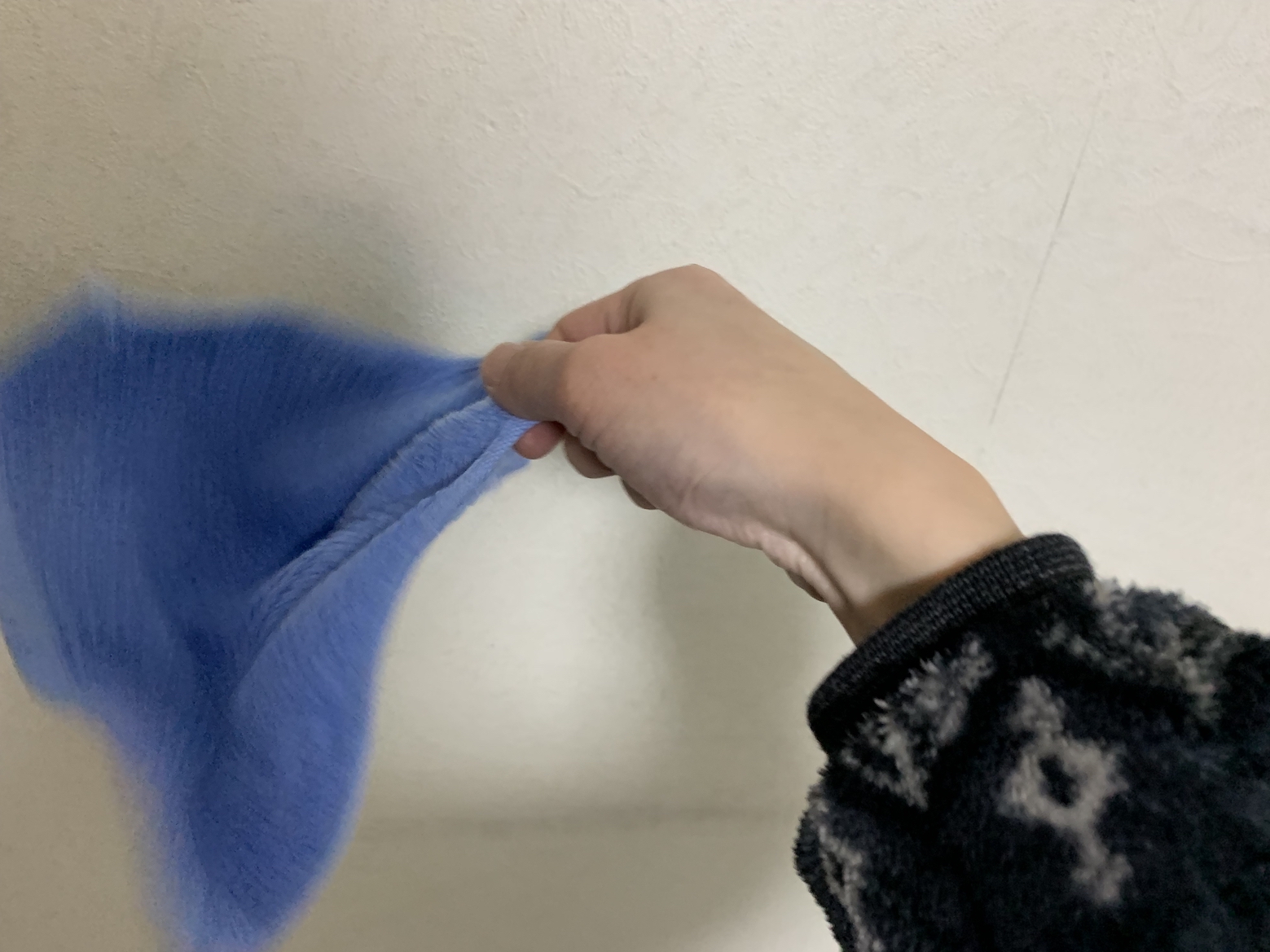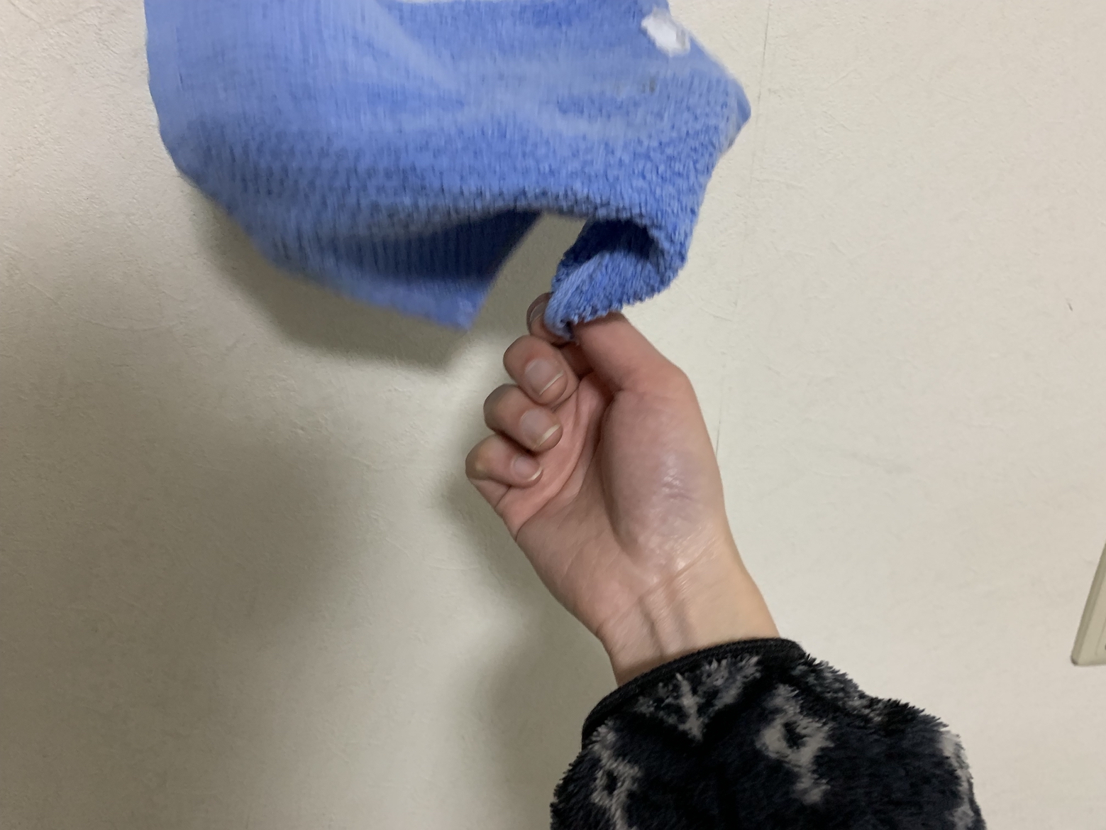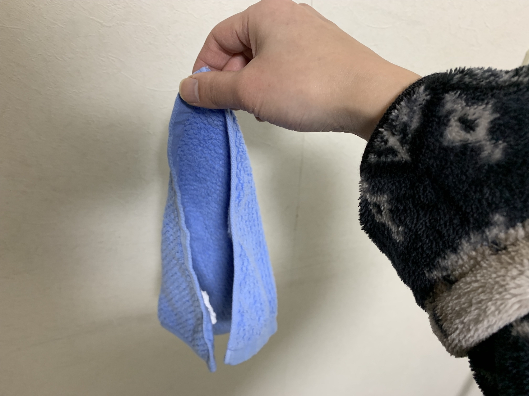 ハンカチの隅っこを持って脱力した状態です。構えます。