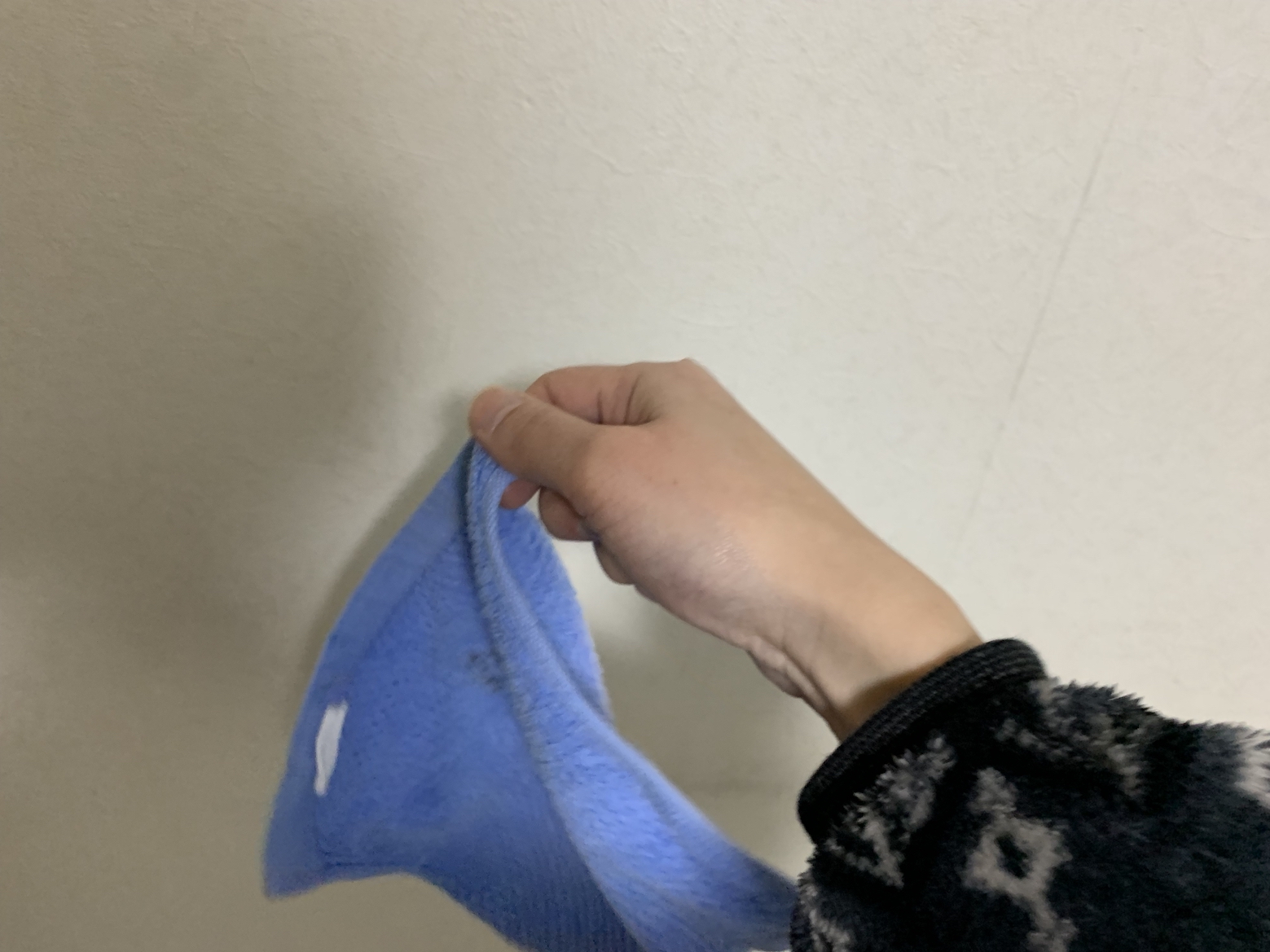 ハンカチを地面に叩きつけるかのように下方向に向かわせます。