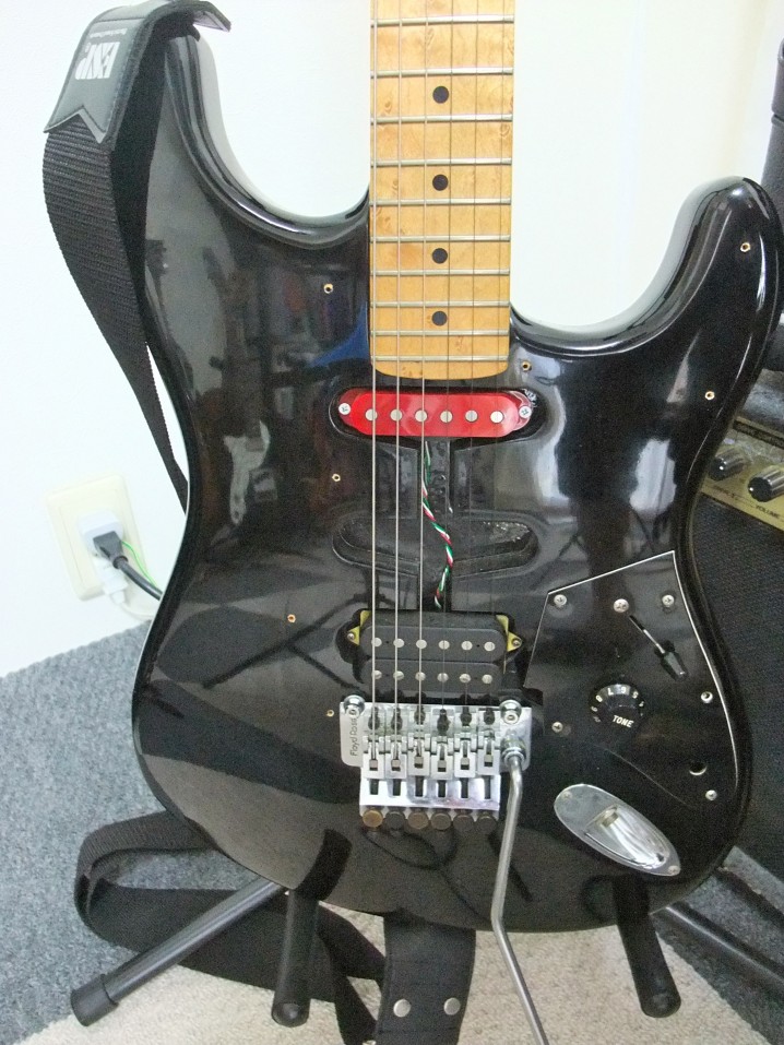 もはやメーカー名はわかりません。ロック式フロイドローズも搭載!派手なアーミングも出来るかも?