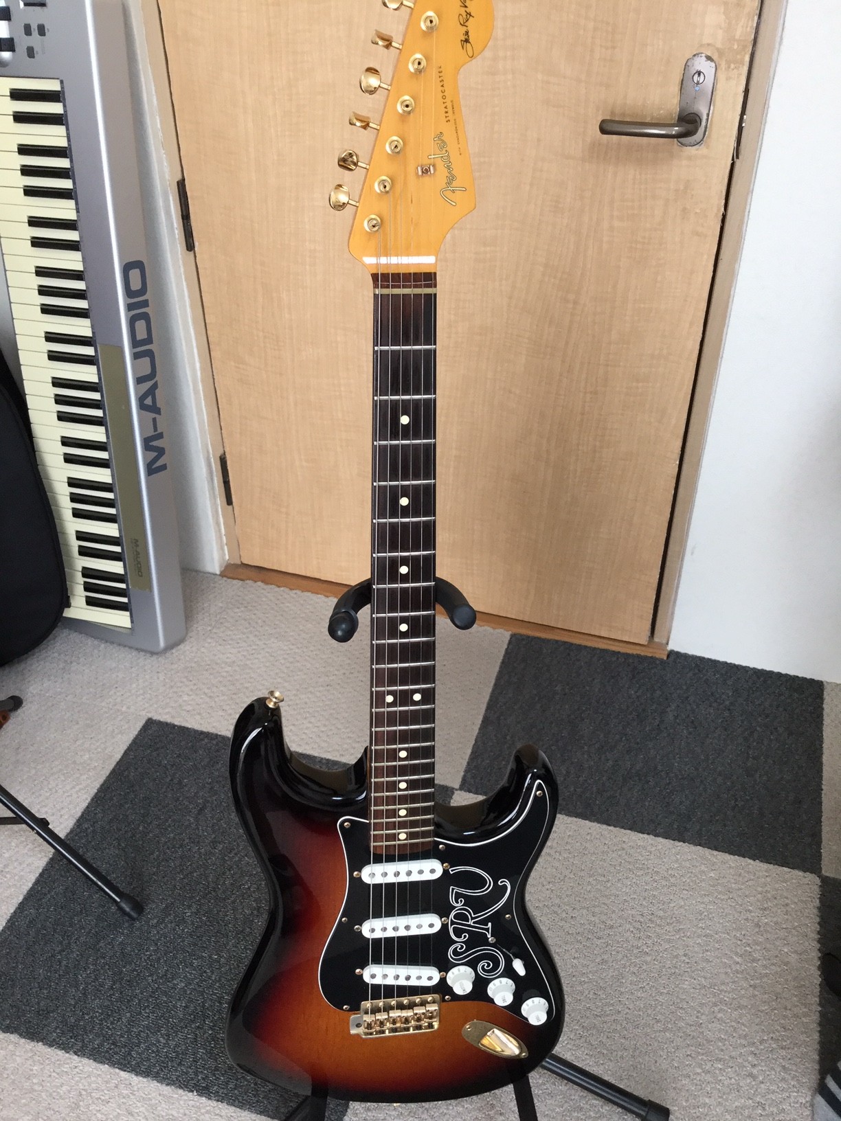 フェンダーのスティービーレイボーンモデルを持ってきてもらいました♪