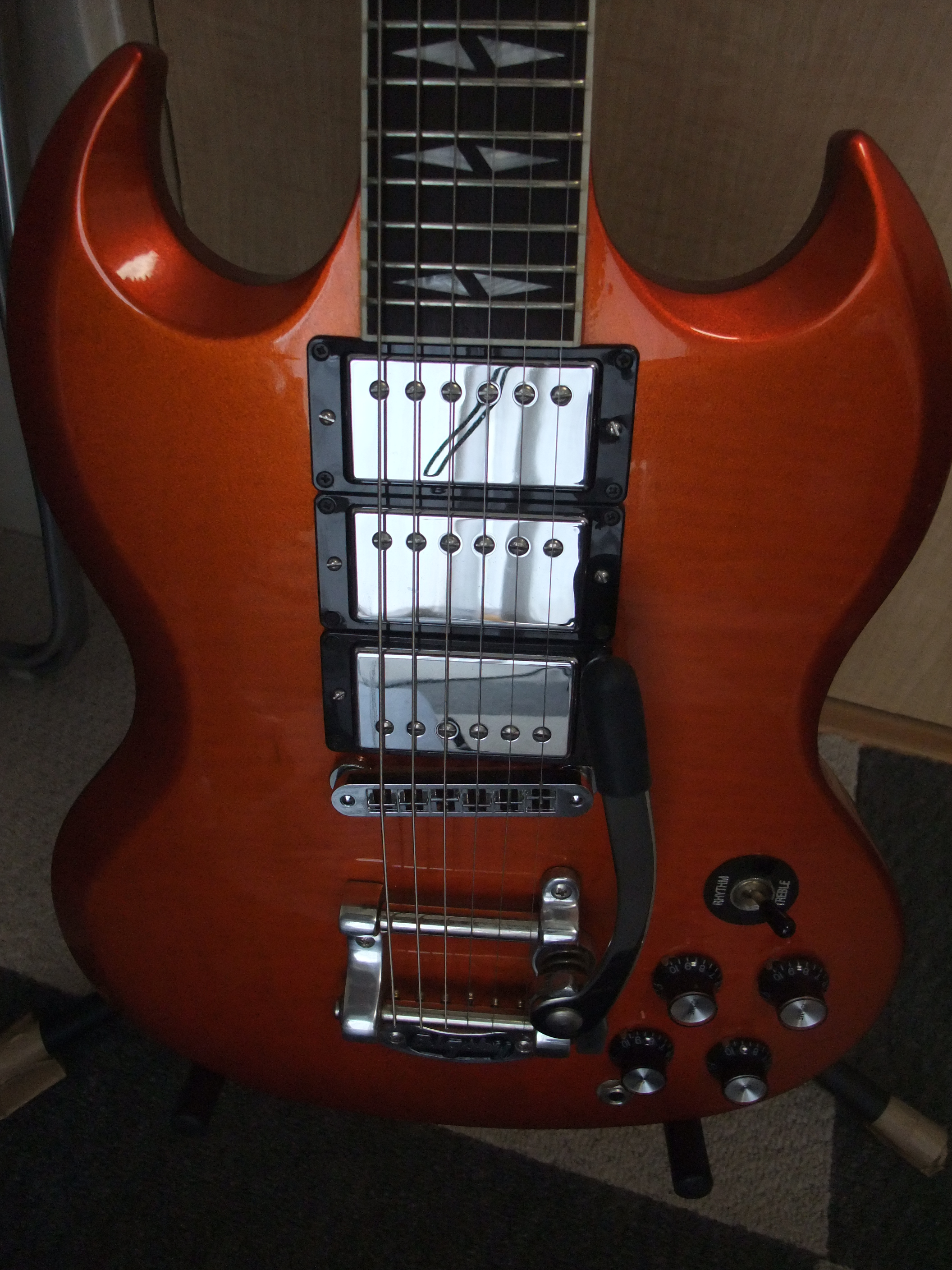 なんとピックアップが3つも搭載という 贅沢三昧なギターです。