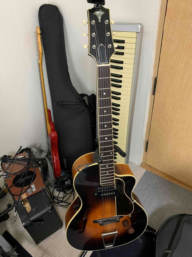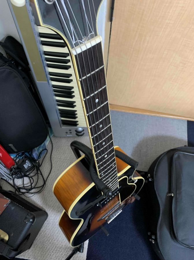 フルアコは、非常にボディーがデカく構えにくいのが定番。しかしこのギターは