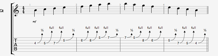 右に1フレットづつずらしてキーを半音づつ変えて練習するのも効果絶大!