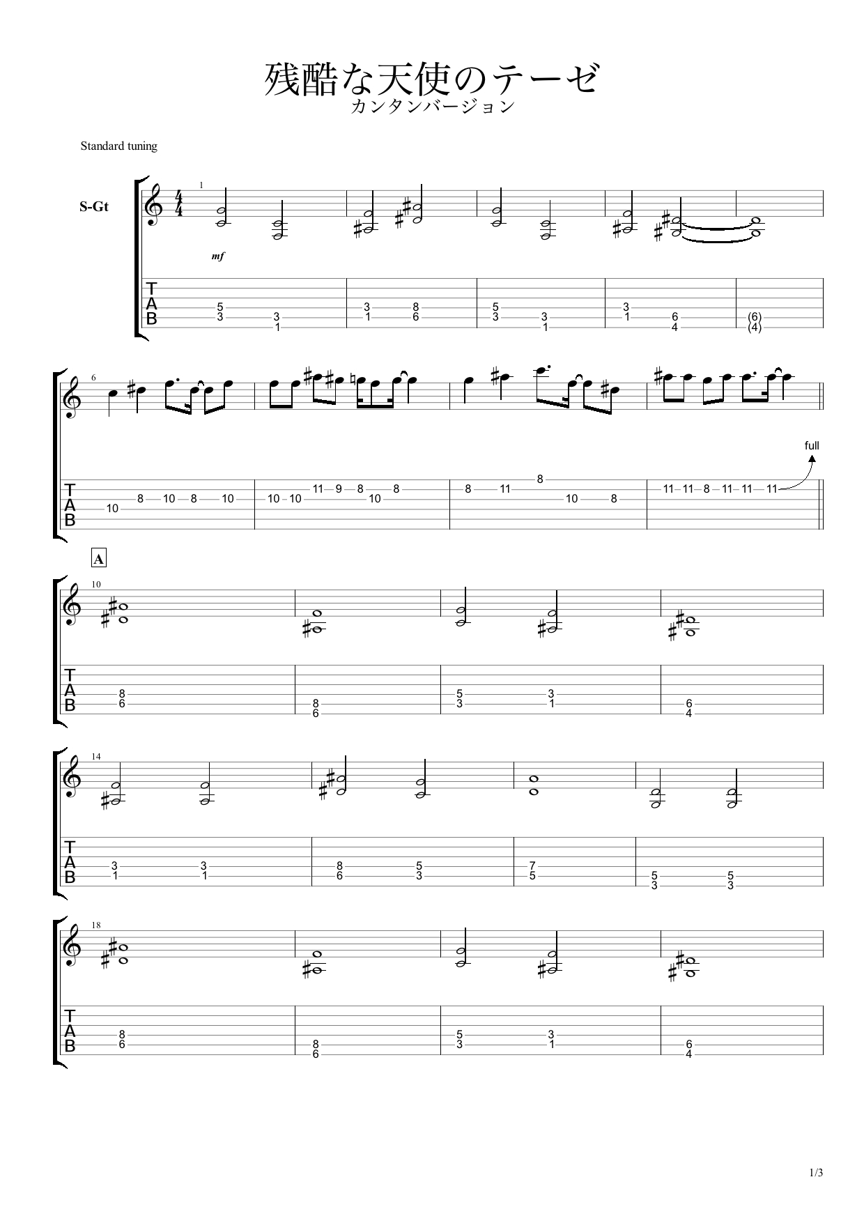 ギターでメロディーまたは、コードを弾きたい方はこちらの譜面をどうぞ。