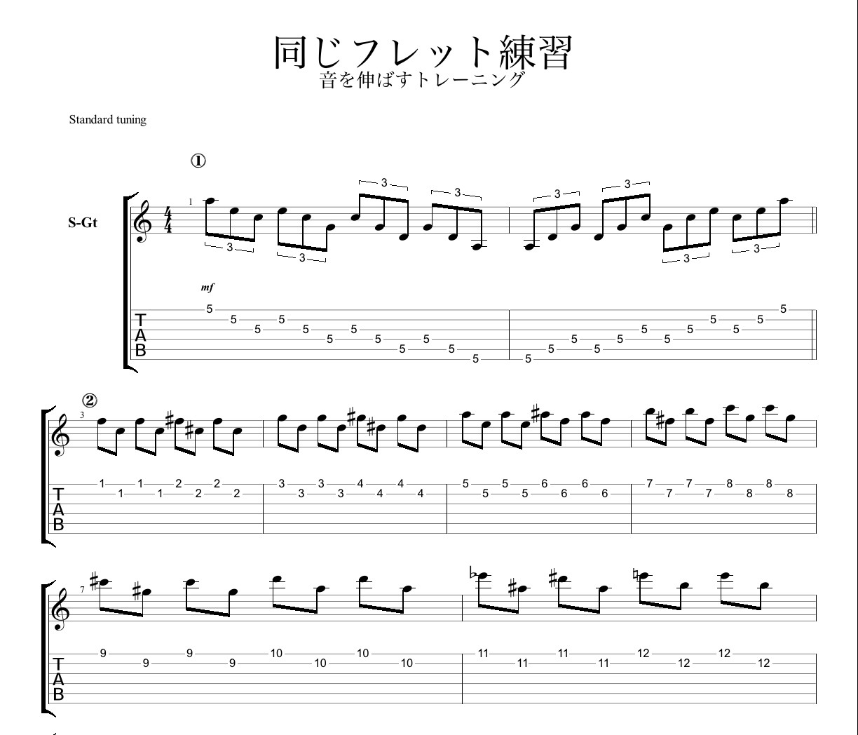 弦を移動する時が一番 音が伸ばしにくく 切れやすいので 同じフレット間の練習を