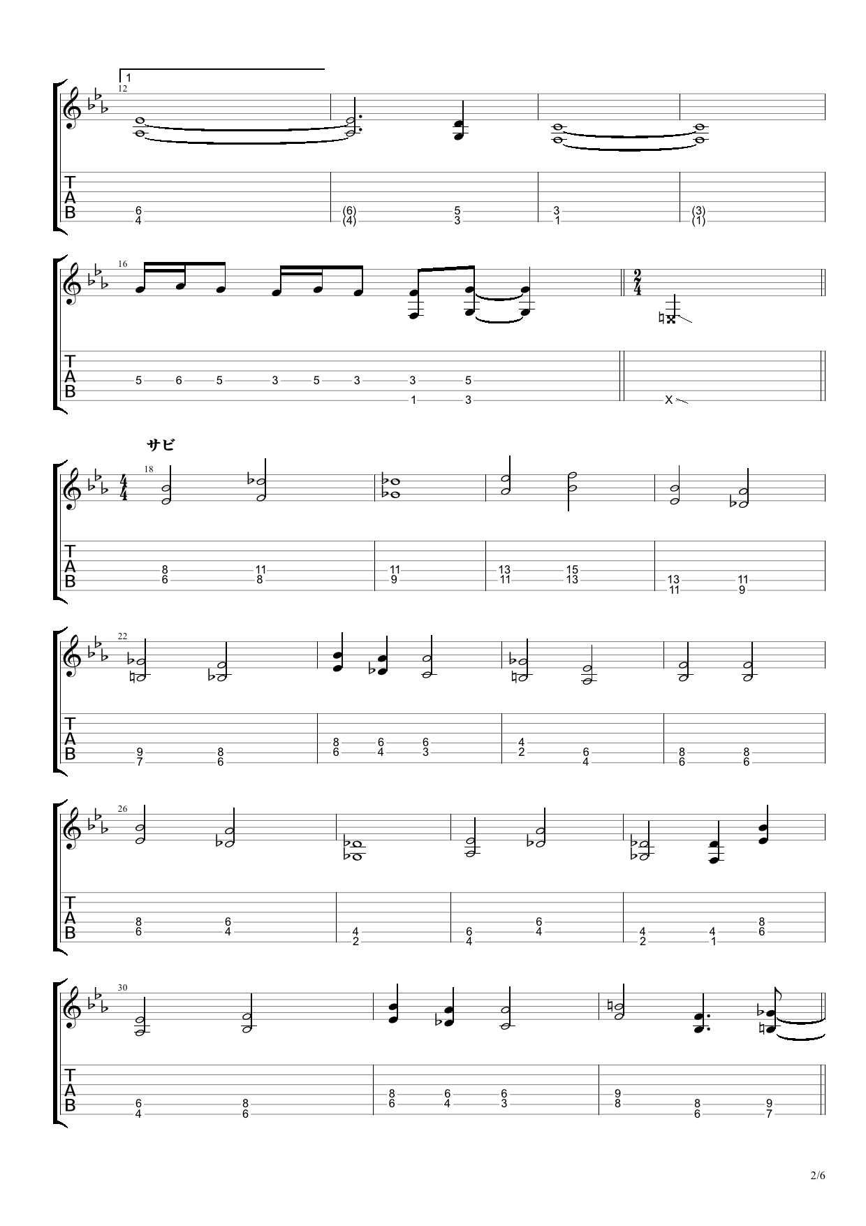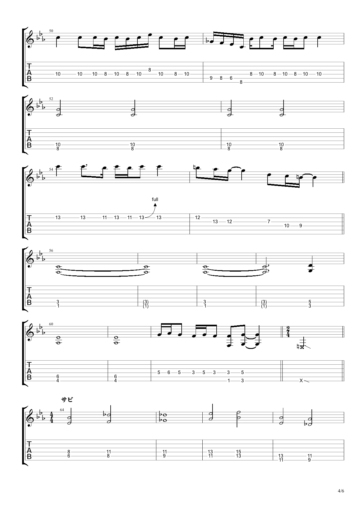 今日は、『明け星』の耳コピ フルバージョンのTAB譜のご紹介です。