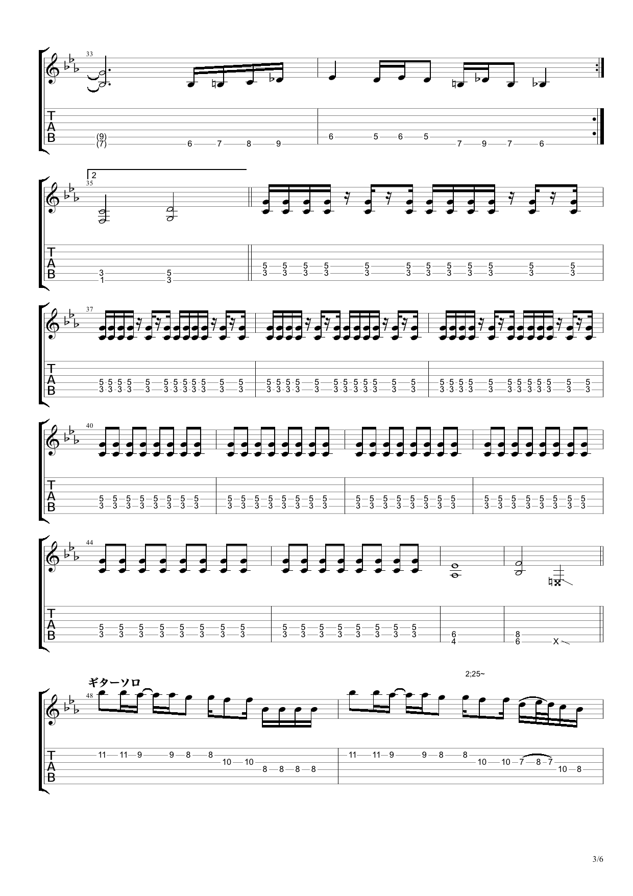 ギターがガンガンに前に出ています。エレキギターで弾く曲としても おすすめです!