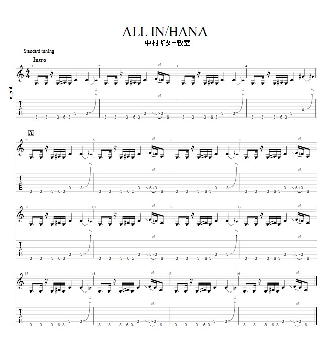 ロックなギターで弾ける【ALL IN/HANA】完全耳コピTAB譜つくってみました