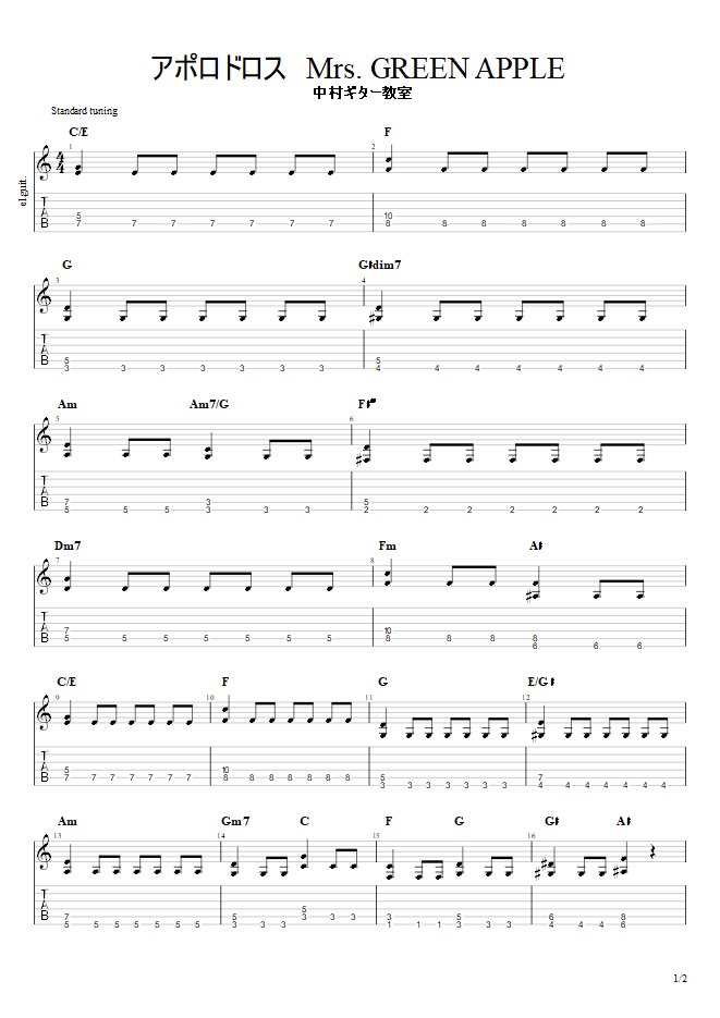 【アポロドロス/Mrs. GREEN APPLE】オリジナルtab譜